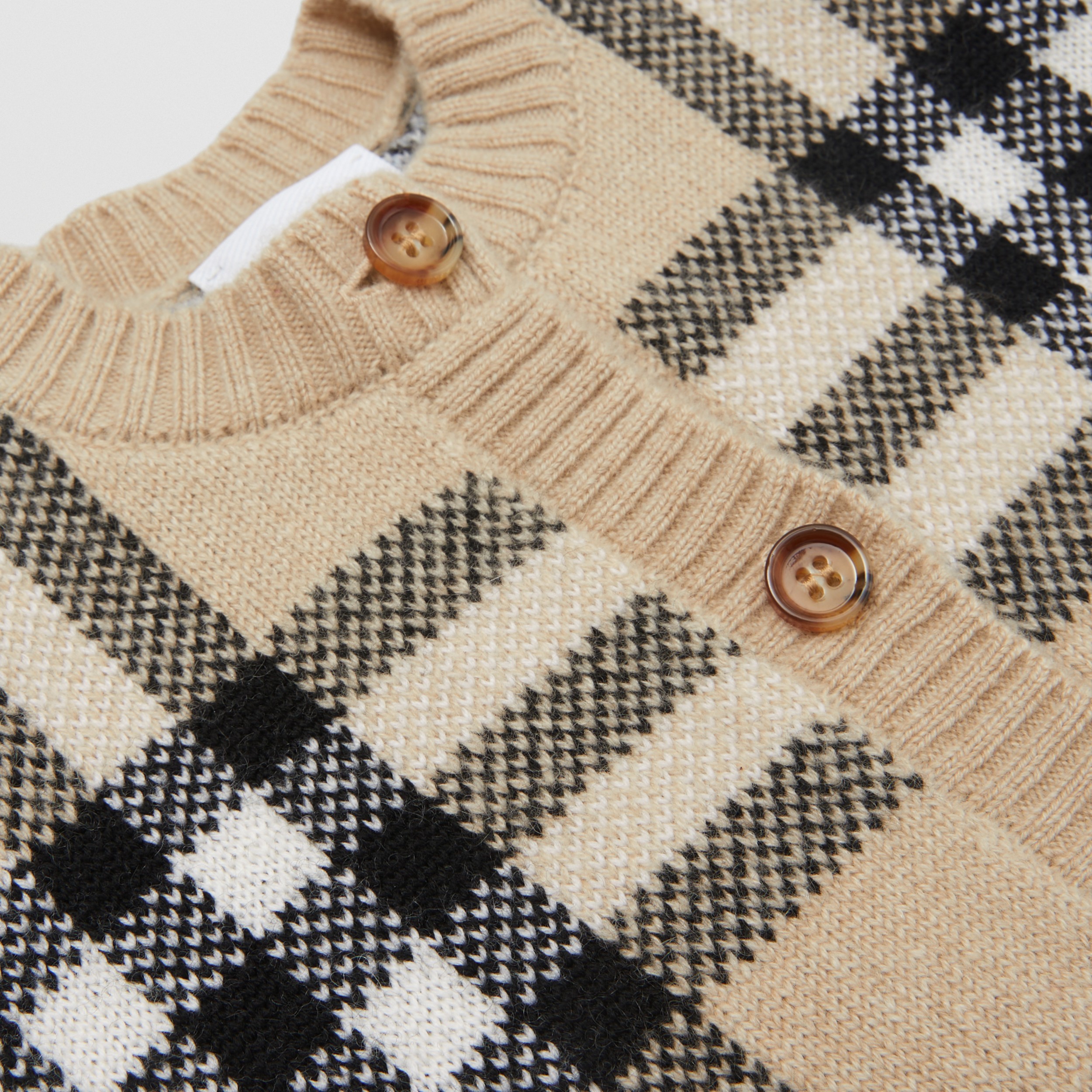 Check Wool Cashmere Blend Jacquard Cardigan In Pale Sand Children Burberry Official